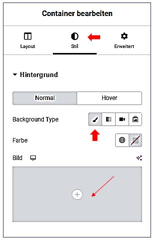 Container bearbeiten / Stil / Hintergrund / Hintergrund Type /