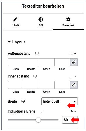 Bild bearbeiten / Erweitert / Layout / Breite: individuell /