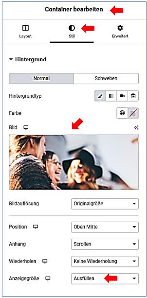 Container bearbeiten / Stil / Hintergrund Überlagerung /