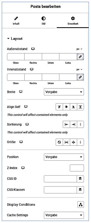 - Hier können Sie eine benutzerdefinierte CSS-Klasse hinzufügen. Dies ist nützlich, wenn Sie spezifische Stile anwenden möchten, die nicht in den Standardoptionen verfügbar sind.