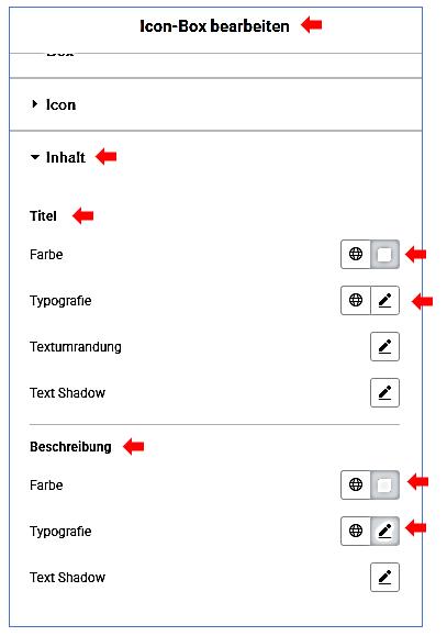 Icon-Box bearbeiten / Icon-Inhalt-Beschreibung /