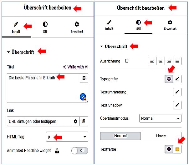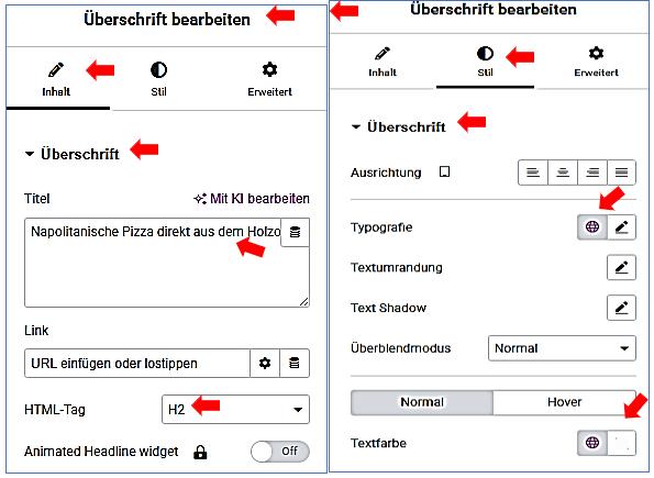 Überschrift bearbeiten / Inhalt / Überschrift / Titel