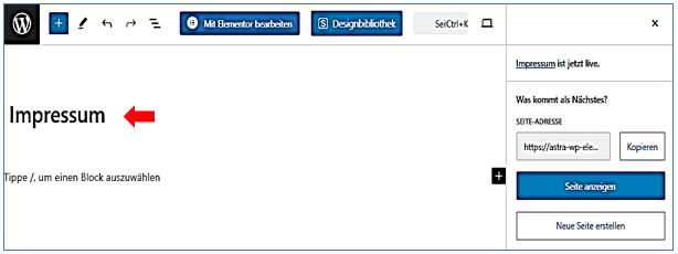Seiten / Neue Seite / Titel: Impressum