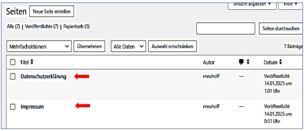 Sie können die Datenschutzerklärung, die bei der WordPress-Installation angelegt wurde, verwenden oder Sie erstellen eine neue Seite.