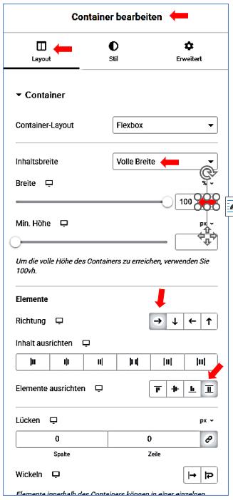 Container bearbeiten / Erweitert / Layout / Innenabstand
