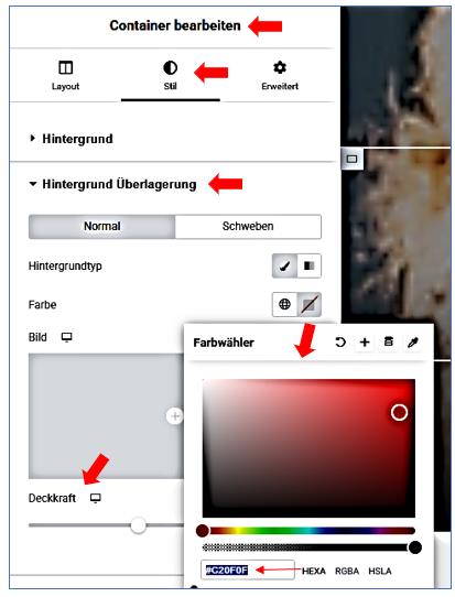 Container bearbeiten / Stil / Hintergrund-Überlagerung