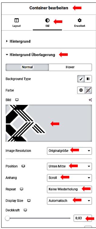 Container bearbeiten / Stil / Hintergrund Überlagerung /
