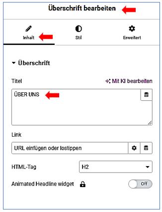 Überschrift bearbeiten / Inhalt / Überschrift /