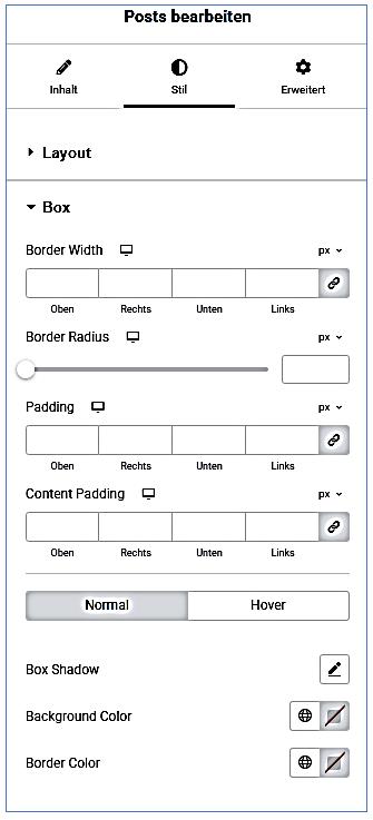 Im Bereich Stil können Sie das Aussehen der Beiträge anpassen.