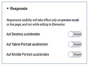 Passen Sie an, ob das Widget auf mobilen Geräten sichtbar sein soll. Sie können das Widget für bestimmte Bildschirmgrößen ausblenden. - Layout-Anpassungen: