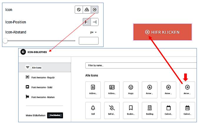 Sie können vor bzw. nach dem Text ein Icon aus der Icon-Bibliothek aussuchen und platzieren