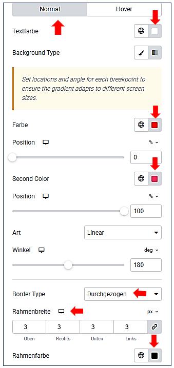 NORMAL = Im Normalzustand hat der Elementor-Button ein festgelegtes Design, das die Form, Größe und Farbe des Buttons umfasst.
