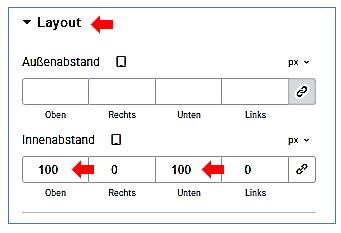 (innerer) Container bearbeiten / Layout / Elemente /