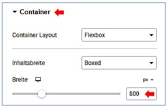 Container bearbeiten / Stil / Container bearbeiten / Erweitert