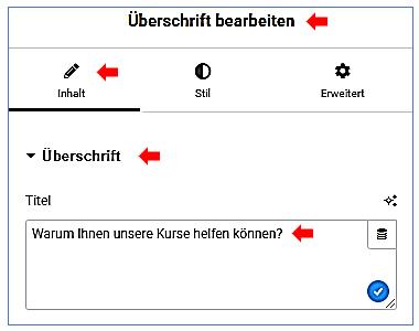 Überschrift bearbeiten / Inhalt / Überschrift