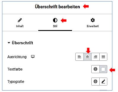 Überschrift: Textfarbe + Ausrichtung