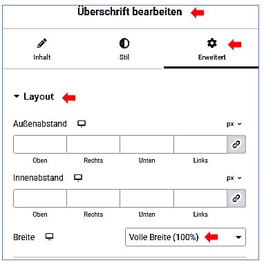 Überschrift bearbeiten / Erweitert / Layout /